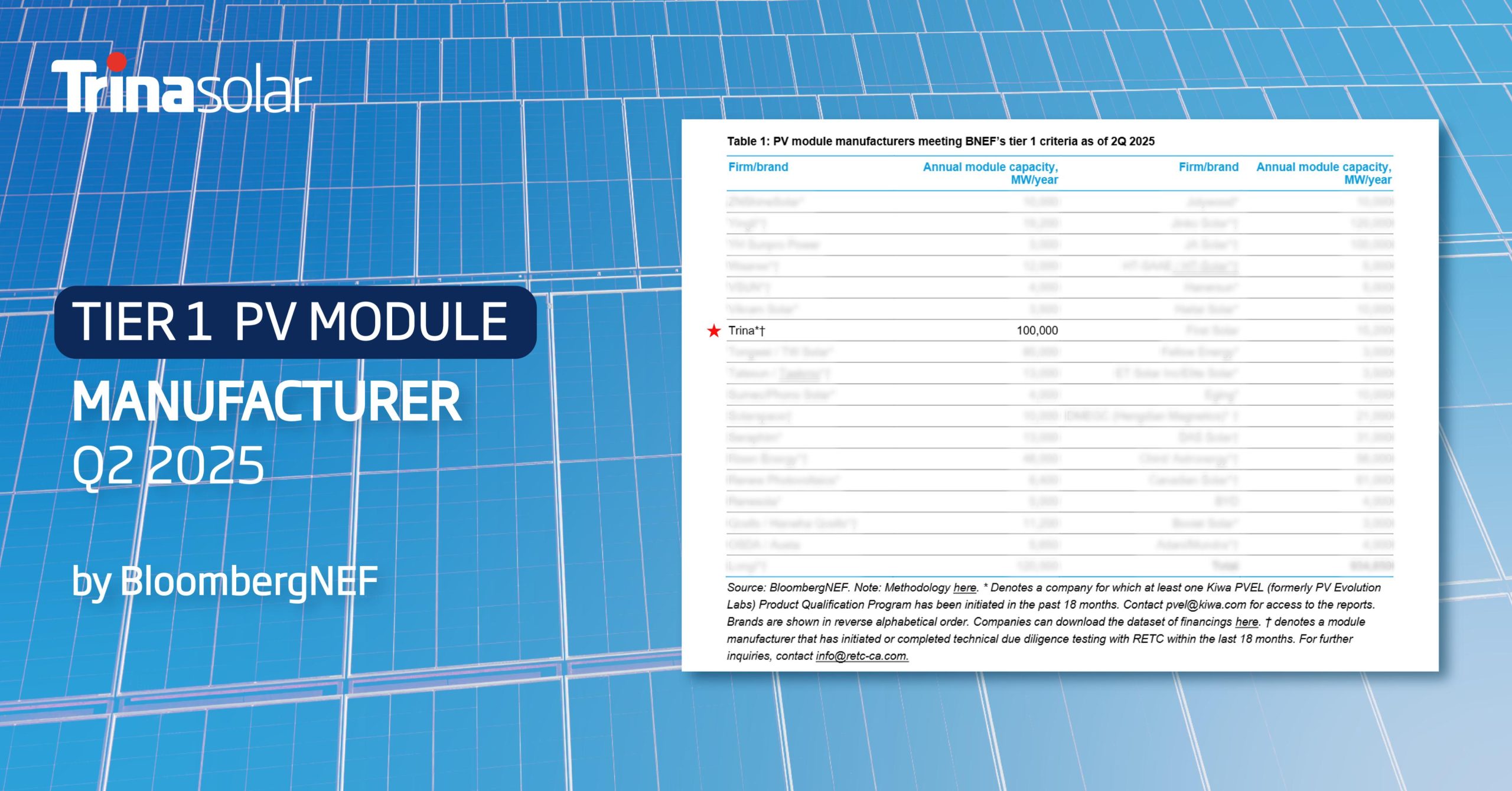 Trinasolar Reaffirms Tier 1 Status in BNEF Q2 2025 List, Underscoring Exceptional Bankability and Global Trust