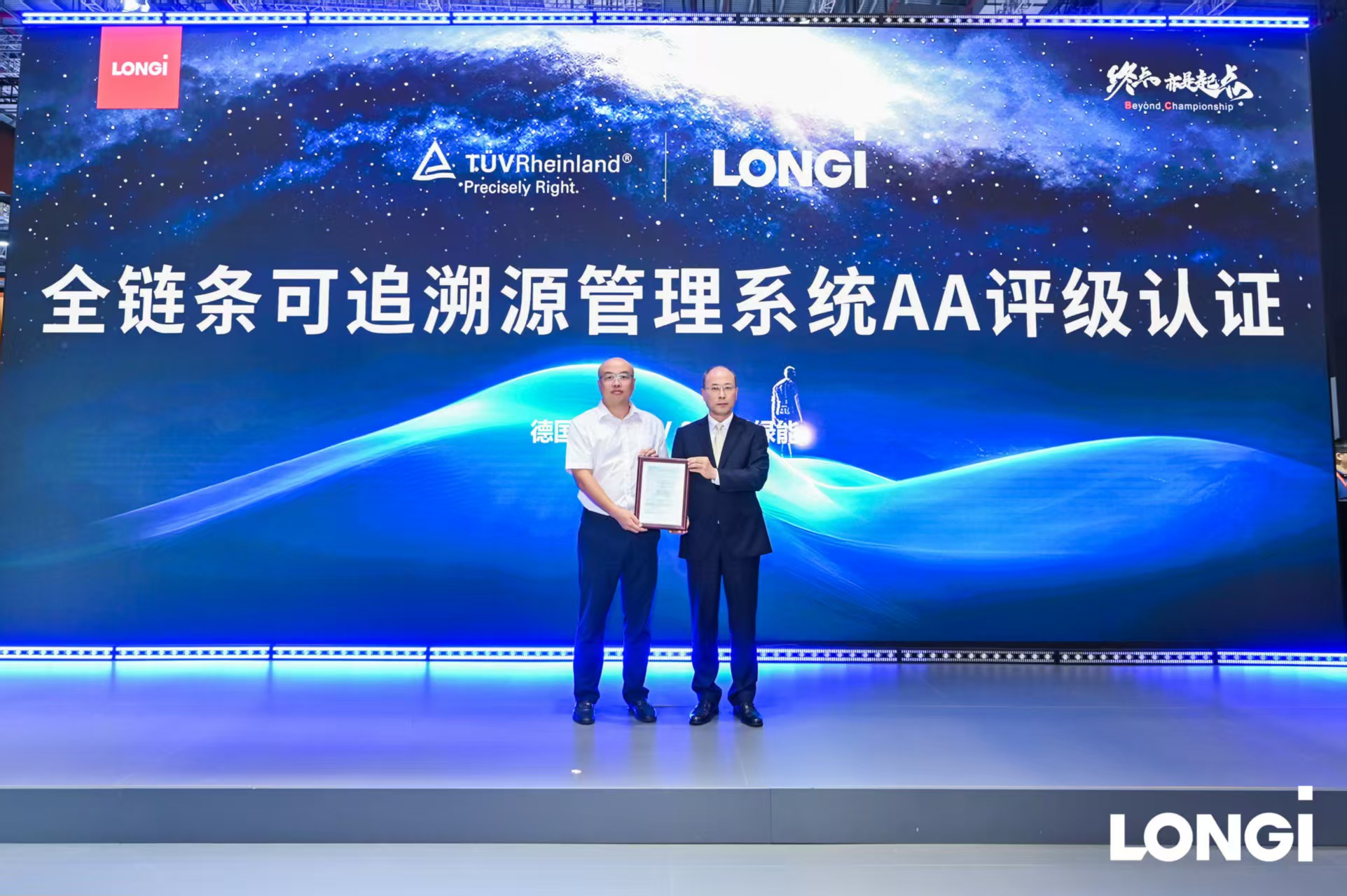 At the exhibition, TÜV Rheinland also awarded LONGi the “AA-Rated Certification for PV Supply Chain Traceability Management System.” Subjected to strict assessment criteria, LONGi achieved the highest AA rating across all supply chain stages – polysilicon, ingot, wafer, and module – demonstrating exceptional supply chain management. This provides robust systemic assurance for the high-quality and high-efficiency performance of LONGi’s BC products throughout their lifecycle. This honor reflects LONGi’s core strengths cultivated over years: full industry chain synergy, digital empowerment, and continuous capability building.